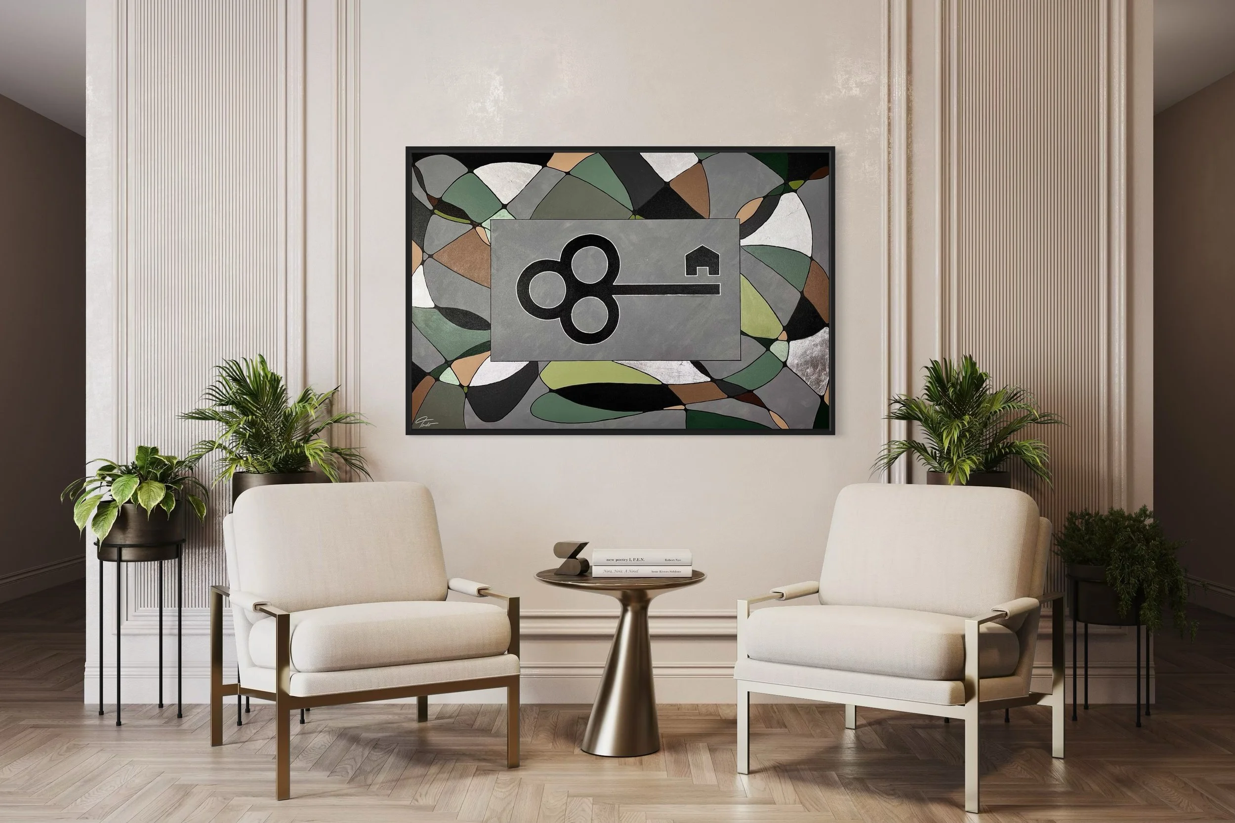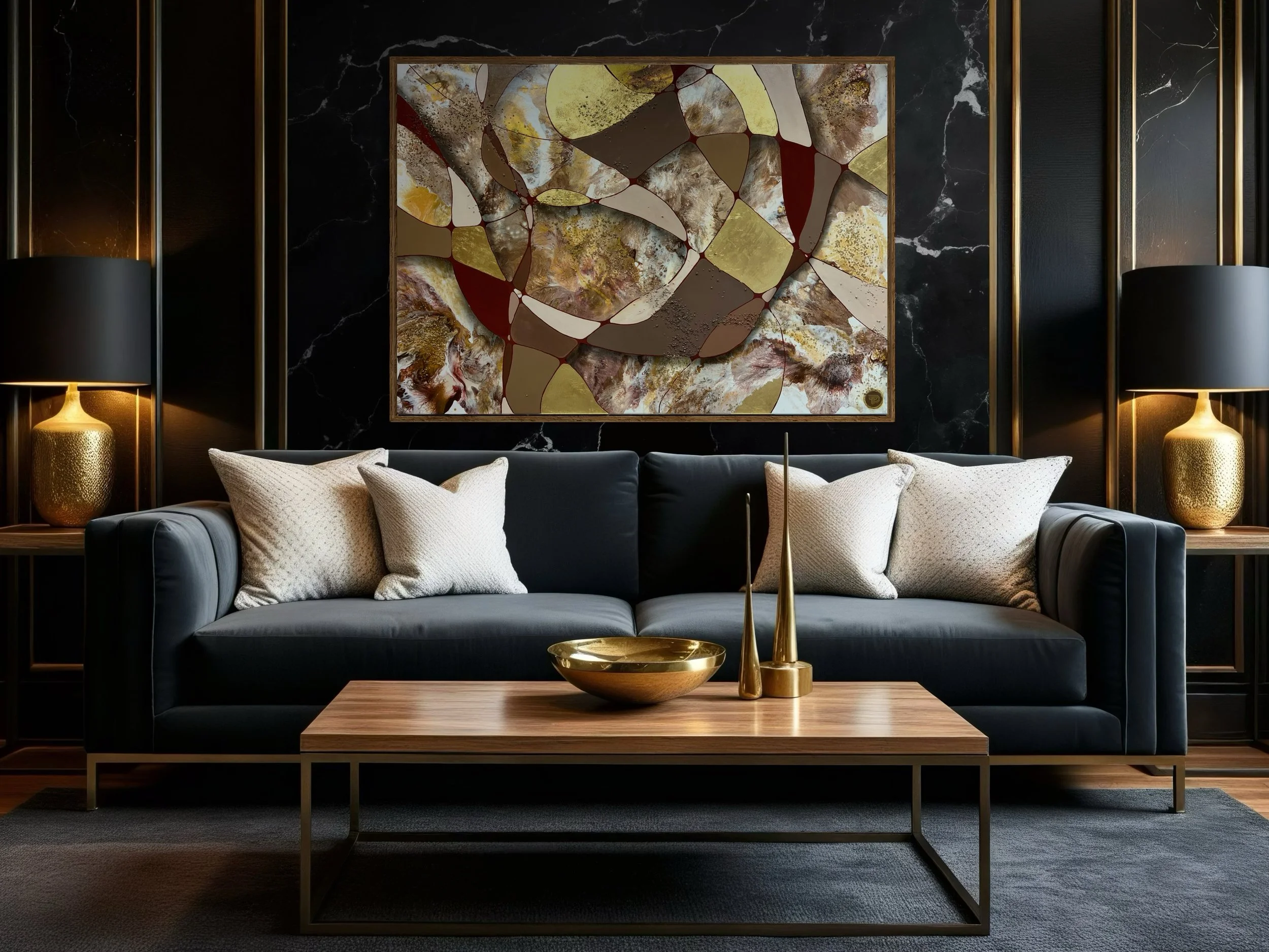 Heute erschaffe ich genau diesen Anker in meiner Kunst. Jedes Werk trägt die Energie von Werten, die mir wichtig sind, und verbindet sie mit Linien, Farben und dem Leuchten von Blattgold. Sie sind stille Begleiter, die dich daran erinnern: Du bist gut genug, du darfst loslassen, du darfst lieben.